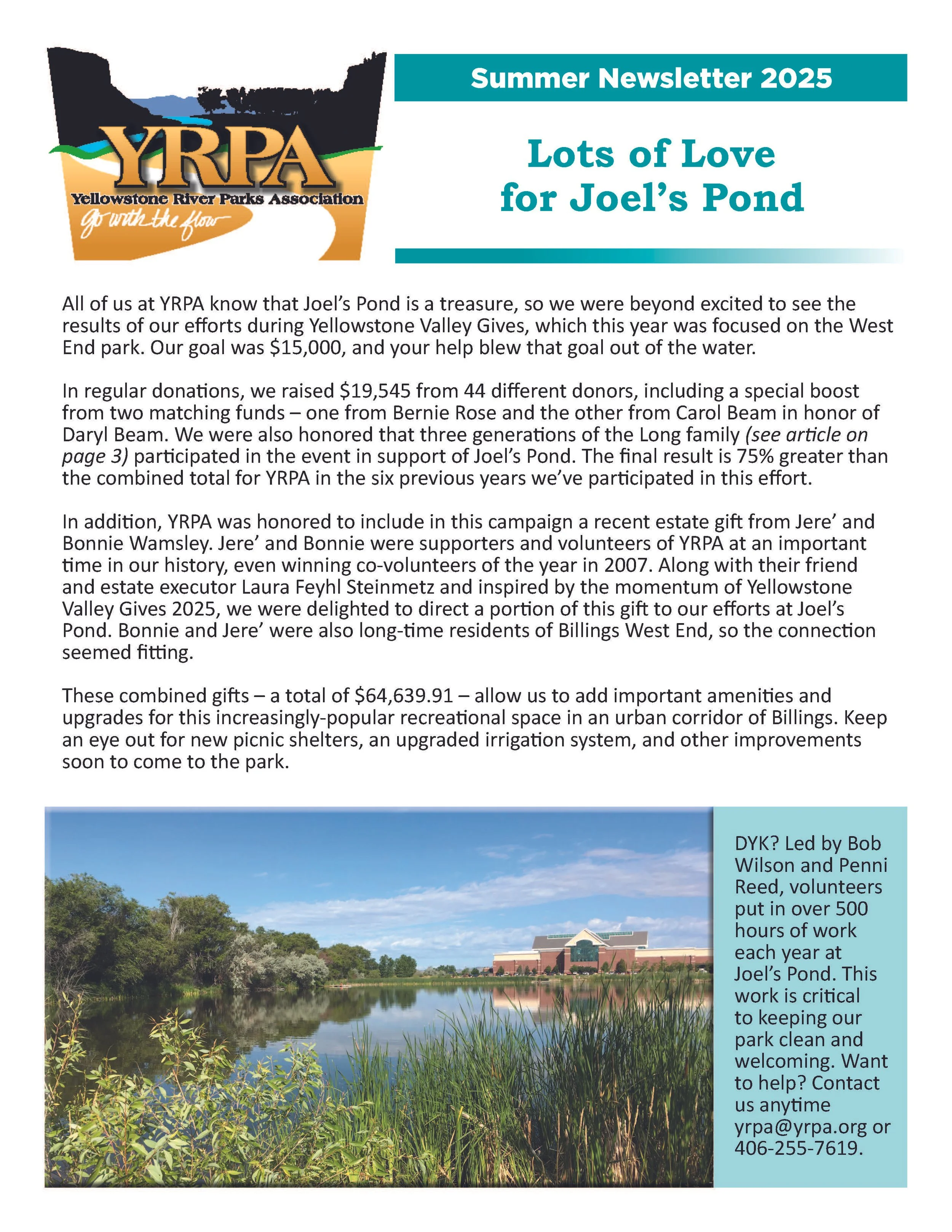 YRPA is being honored in 2024 and 2025 by an exhibit of stunning, custom-made art kites in “Go With the Flow: A Tribute to YRPA.” Organized by former board member and long-time friend of YRPA, Terry Zee Lee, the exhibit features 18 kites at 10 locations throughout Billings. See the map of kite locations and learn about the kites and artists here by clicking on the button below.